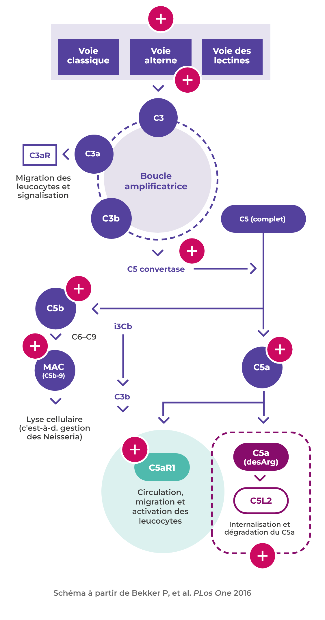 L'interaction entre la voie alterne du complément activée, les neutrophiles et la protéine C5a est au centre des lésions vasculitiques constatées dans le cadre d'une VAA2