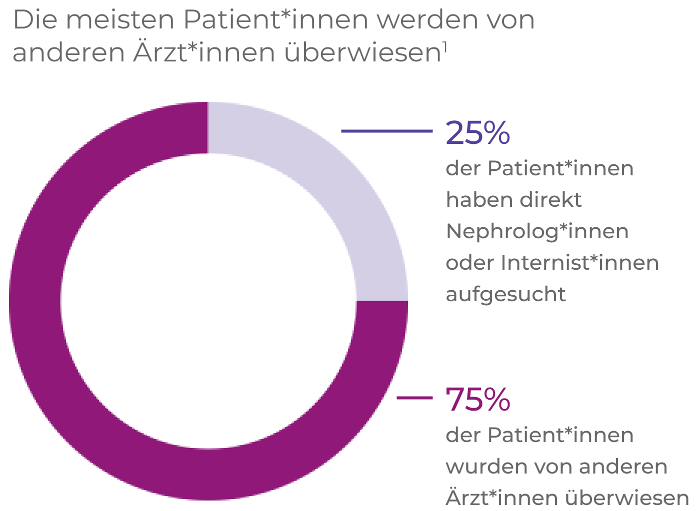 Viele Patient*innen haben bei der Vorstellung Nierenerkrankungen, aber unspezifische Symptome überwiegen, die zur Überweisung führen1