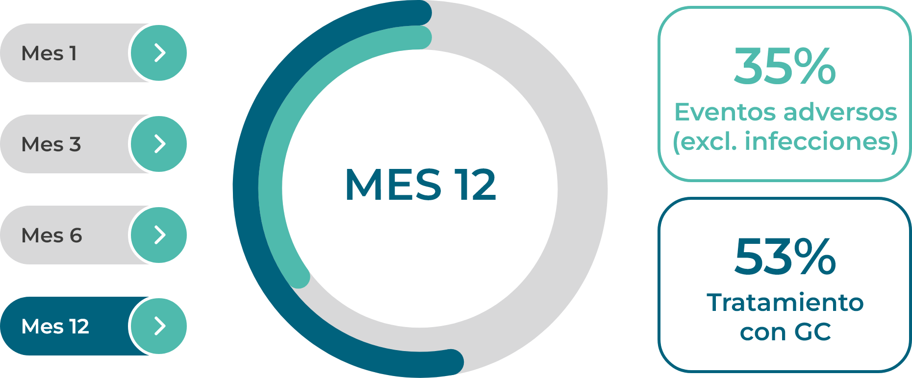 >50% de los pacientes siguen tomando glucocorticoides 12 meses después de iniciar la terapia de inducción1